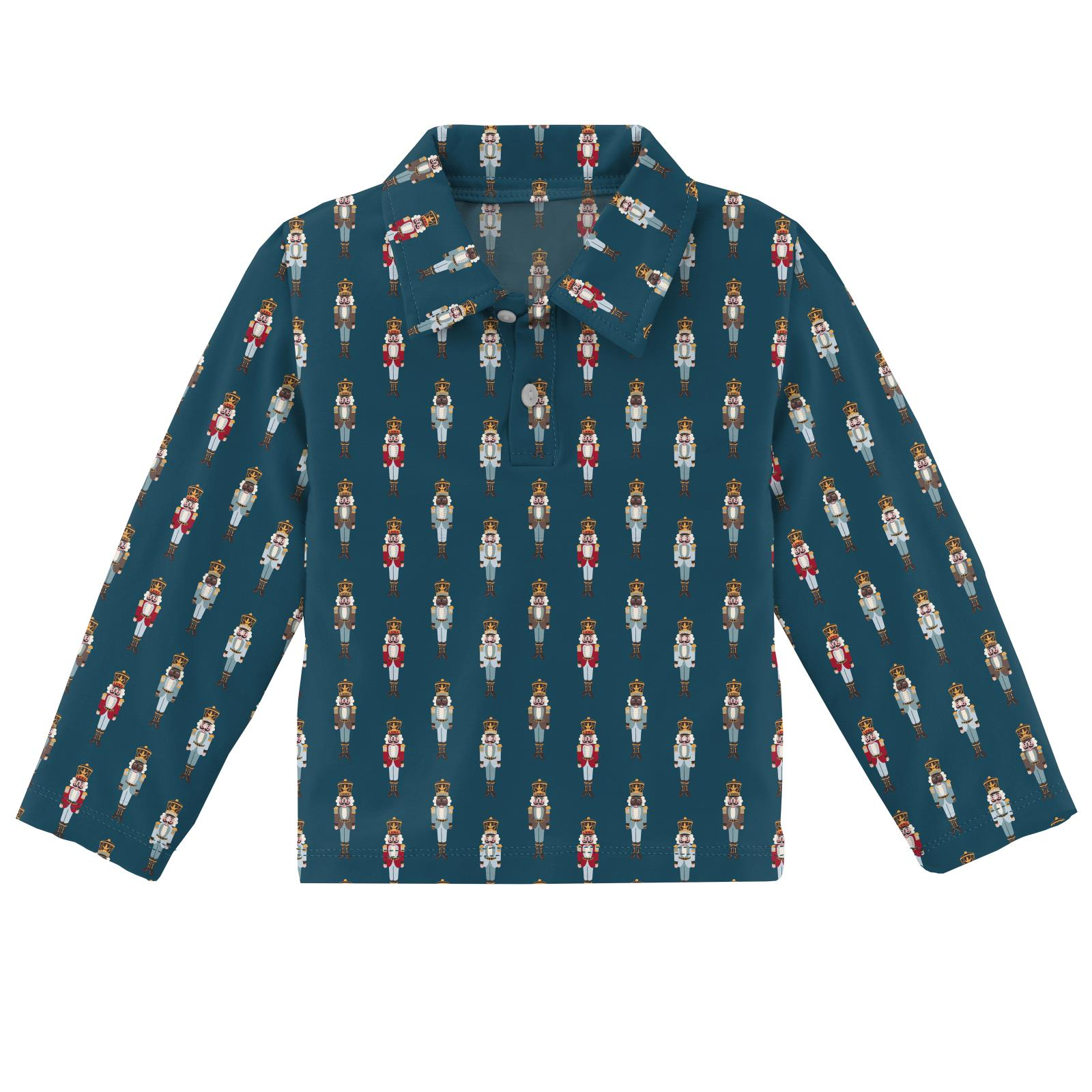 Kickee Pants Peacock Nutcrackers Print Long Sleeve Polo