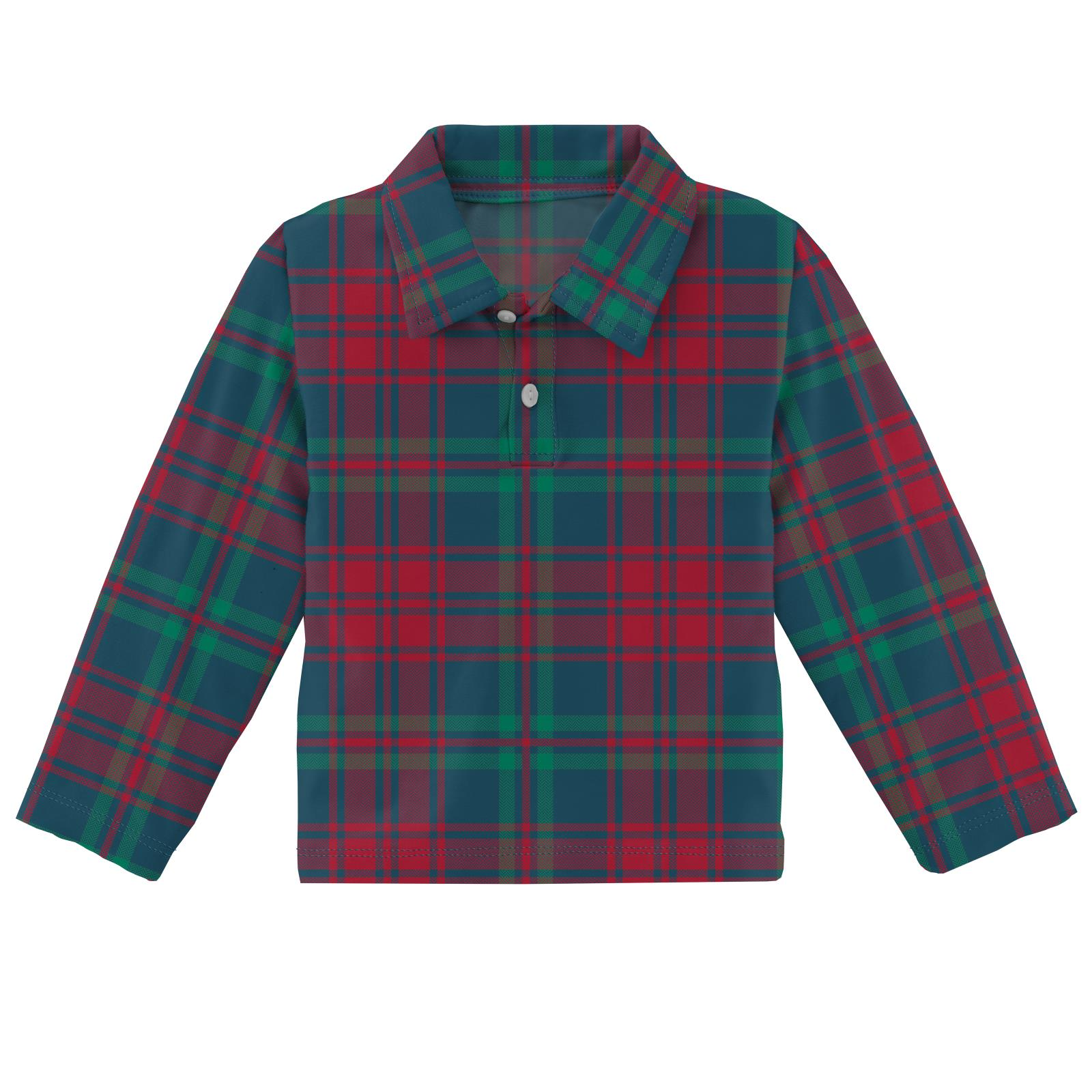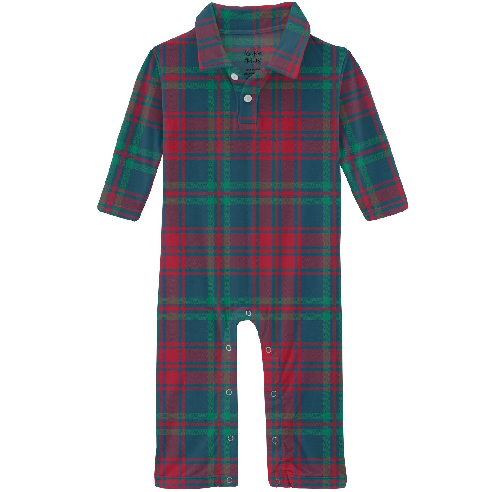 Kickee Pants Peacock Plaid Print Long Sleeve Polo Romper