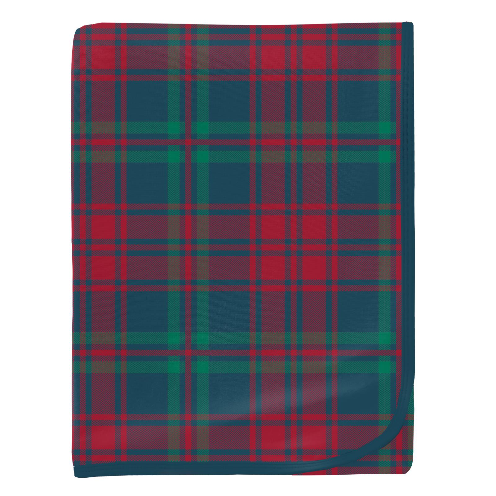 Kickee Pants Peacock Plaid Print Swaddling Blanket