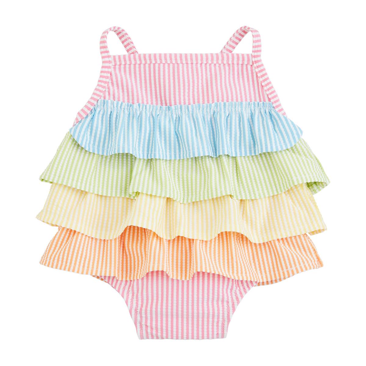 Mud Pie Seersucker Rashguard One-Piece & Hat Set