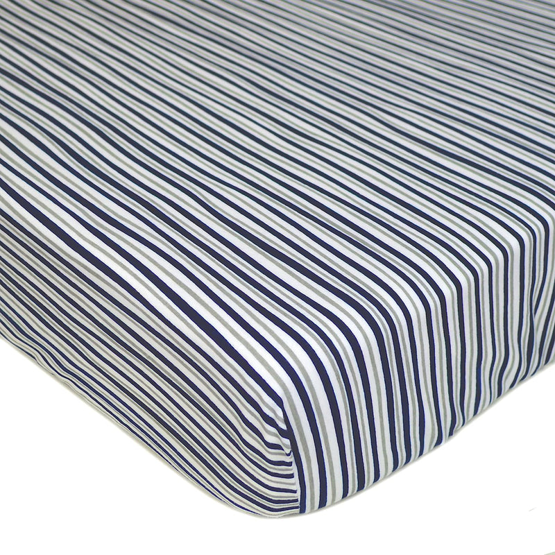 American Baby Co. 100% Cotton Knitted Jersey Crib Sheet - Gray/Navy Funny Stripe