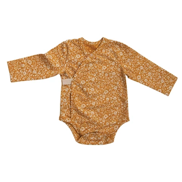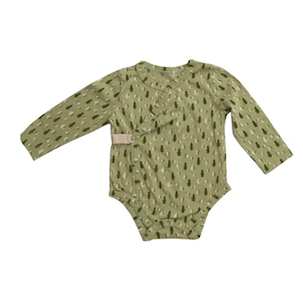 Creative Co-Op Cotton Baby Kimono Long Sleeve Patterned Bodysuit