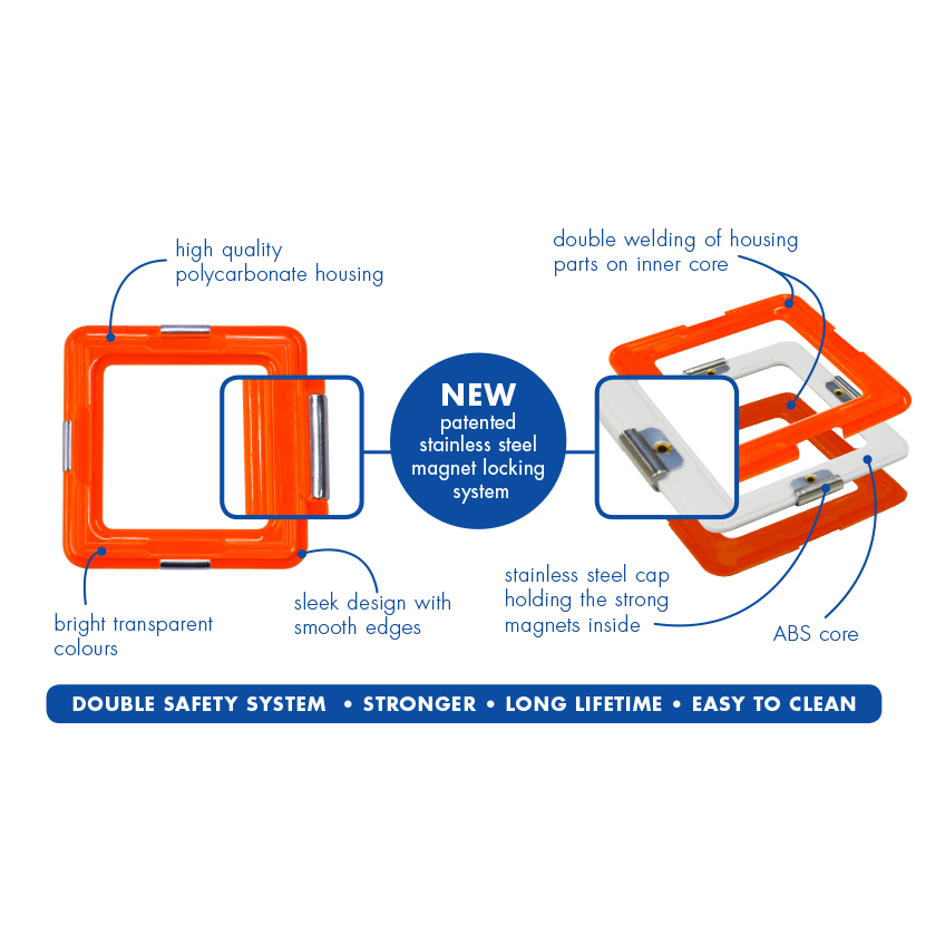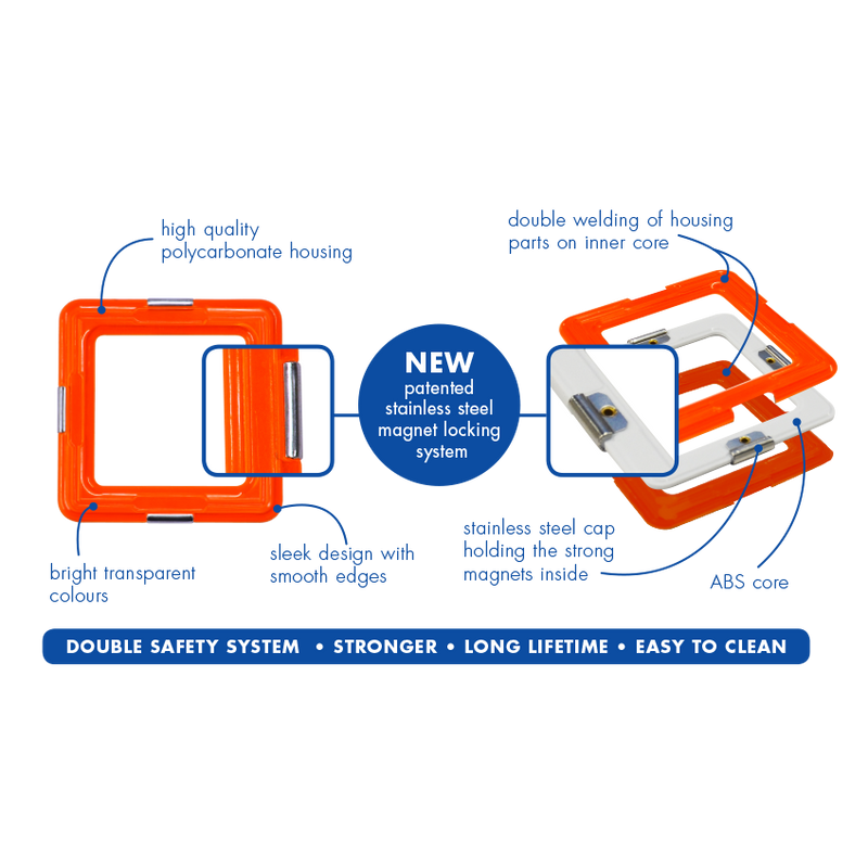 GeoSmart pieces feature a patented double-lock safety system for the ultimate in secure geomagnetic play.