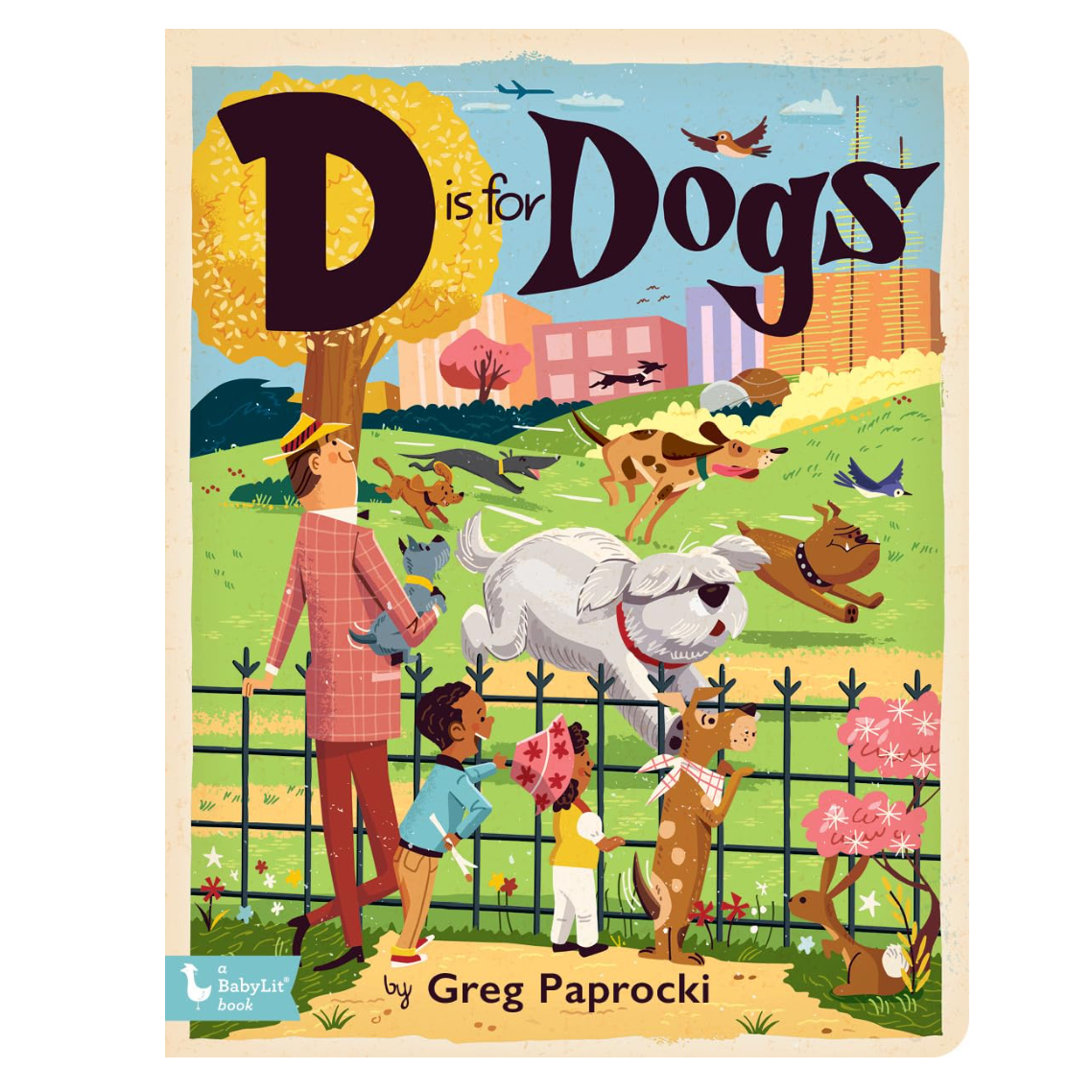A fun collection of illustrations for young readers featuring a variety of dog breeds―ranging from large to tiny―that toddlers might see in their neighborhoods or on TV. These cute-as-can-be dogs―athletic dogs playing in the park, wet dogs shaking off water, sleepy dogs taking naps, hungry dogs having a snack, and more antics―will make toddlers laugh and smile. Another delightful BabyLit alphabet board book featuring Greg Paprocki’s classically retro mid-century art style that’s proven to be a hit with both young children and adults.