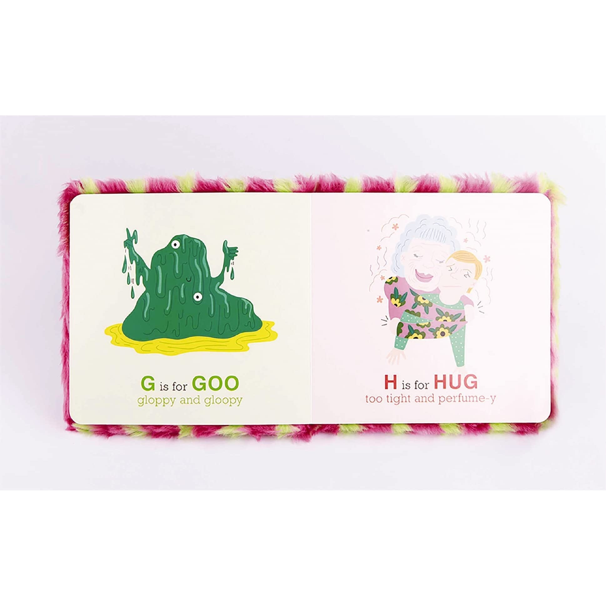 Learning the alphabet has never been yuckier! This colorful, cringey collection cycles through each letter of the alphabet, pairing the ABCs with wonderfully yucky words and hilarious imagery to create an icky-sticky fun tour of our weird little language. Prepare your stomach (and your brain) for combinations like...