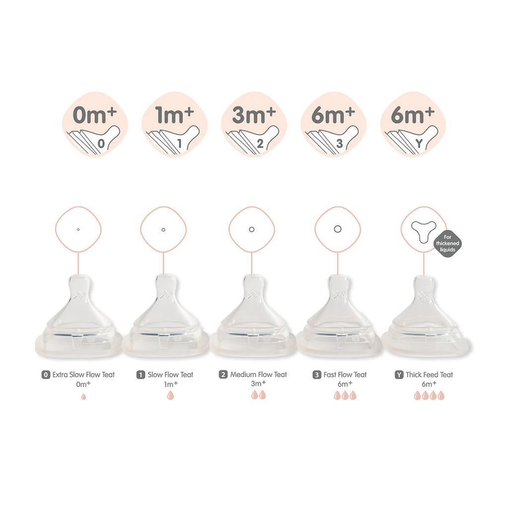 Our velvety soft, egg shaped teat closely mimics a mother's lactating breast while the off-centre teat design promotes upright feeding - similar to a position in which babies are nursed - to reduce the risk of milk back-flow, ear complications and colic.