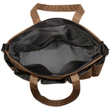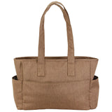 The Nola Tote has a synthetic cotton material that is durable with a water-resistant exterior and easy to keep clean. It includes a changing pad and adjustable stroller straps.