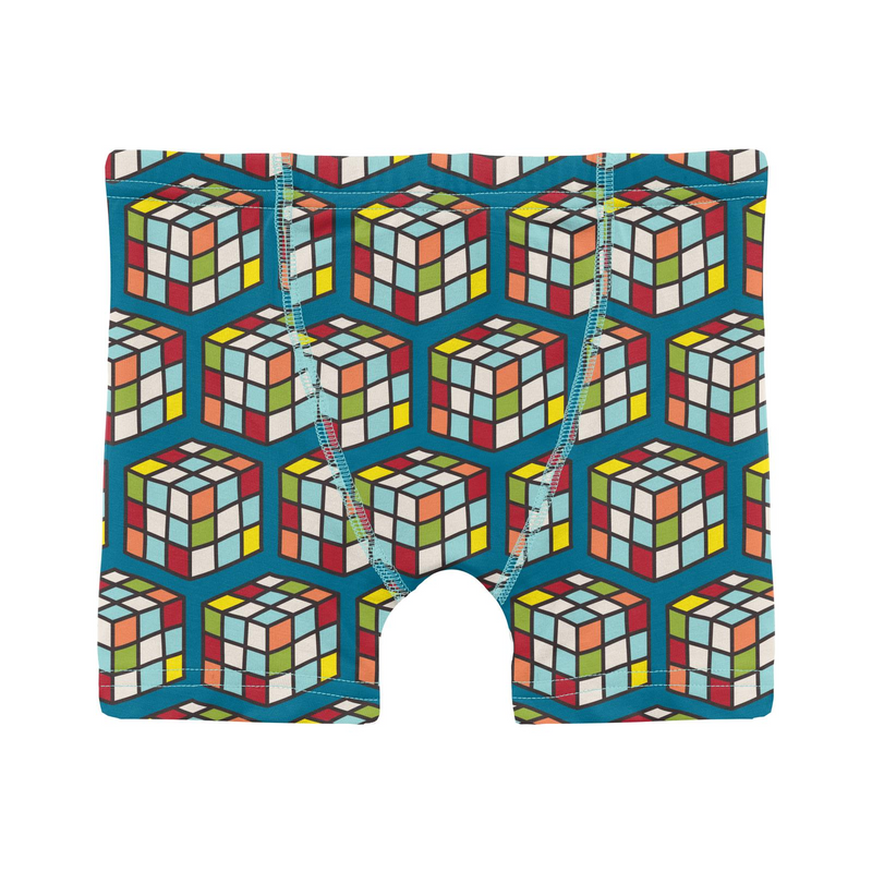 Kickee Pants Cerulean Blue Puzzle Cube Print Boy's Boxer Brief
