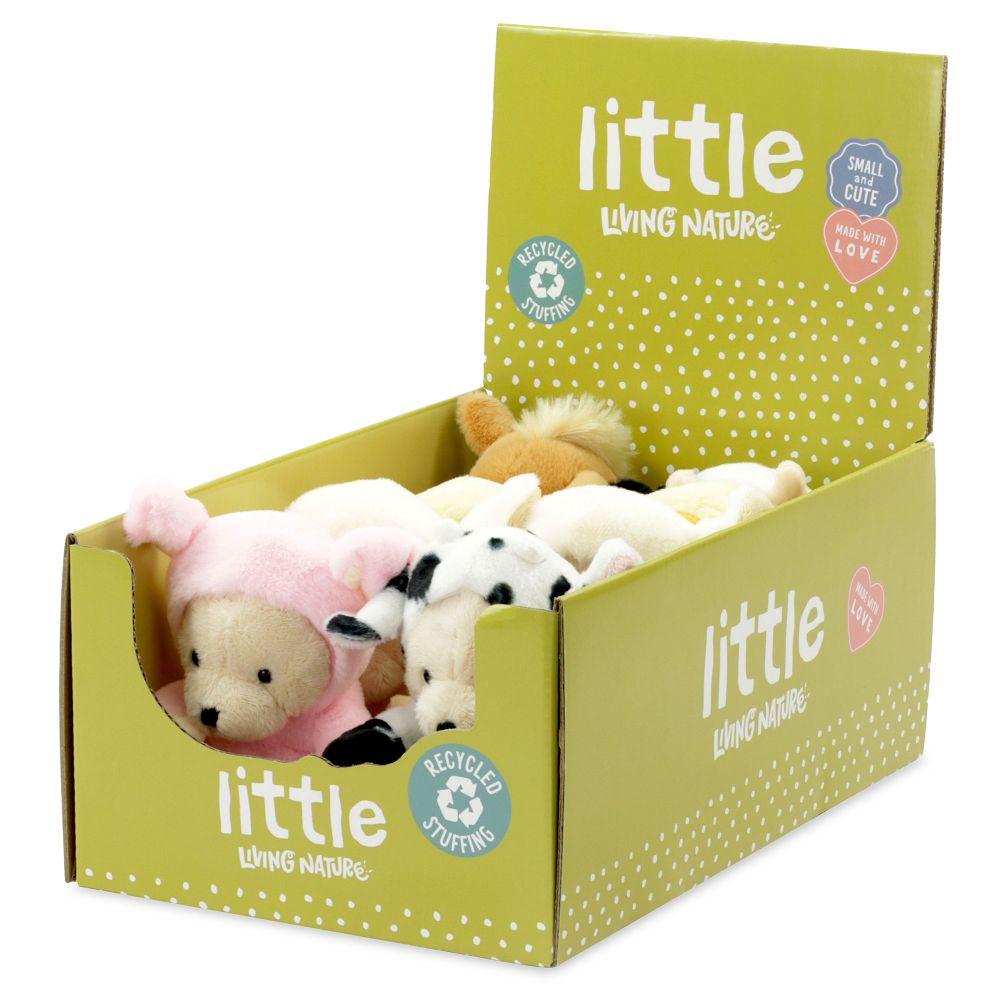 Affordable, adorable and collectable we've created the ultimate impulse purchase toy collection. Our cute mini Little Living Nature Play farm dress-up wholesale toy plush collection features four designs - dress-up cow, dress-up pig, dress-up chick and dress-up lamb mini teddies - pick your favourite or collect them all! Priced perfectly for a pocket money purchase these tiny plushies are super cuddly and too cute to resist. These little farm dress-up teddies are designed with removable hoods for developing hand-eye coordination and pretend-play skills. These adorable dress-up farm animal teddy bear wholesale toys are super soft to the touch and feature removable farm animal hoods. Our wholesale farm teddy plush Little Living Nature Play toys will arrive in a thoughtfully designed FREE merchandising counter display, unwrap and pop them straight onto your POS. To protect the animals we love, we need to protect the places they live too, so we're making our toys more sustainable by using recycled materials. We use plastic bottles and containers that might otherwise end up in landfills or our oceans and give them a new lease of life as stuffing in our toys. It’s so incredibly soft that you would never guess it was made from plastic! Perfect for cuddles and playtime adventures!