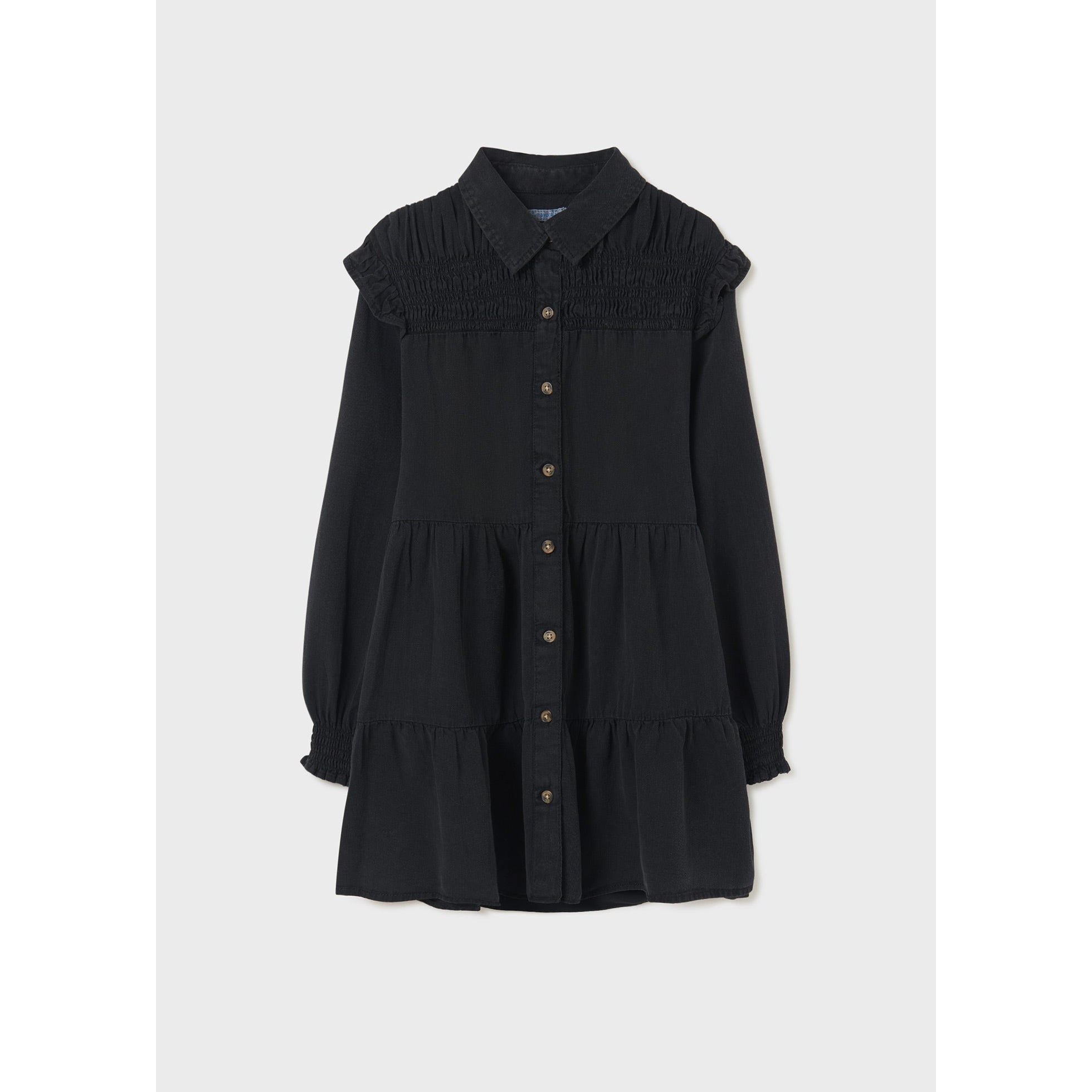 Long sleeved Dress for girl. Shirt collar. Button fastenings down the front.