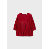 Long sleeved Dress for baby. Round neckline. Opening on the back with an invisible zip. Made using elegant and classic velvet fabric. Decorative elements: bow applique.