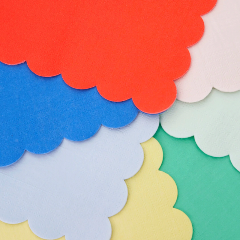 Looking for party tableware that is bright and beautiful? Then you'll love these colorful napkins with a stylish scallop edge.