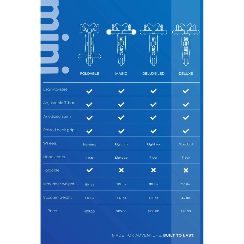- For a glow-up, check out the Mini Deluxe LED version with light-up wheels, also in great colors and pattern