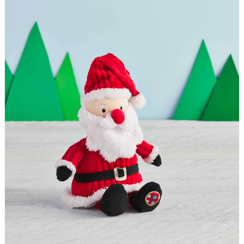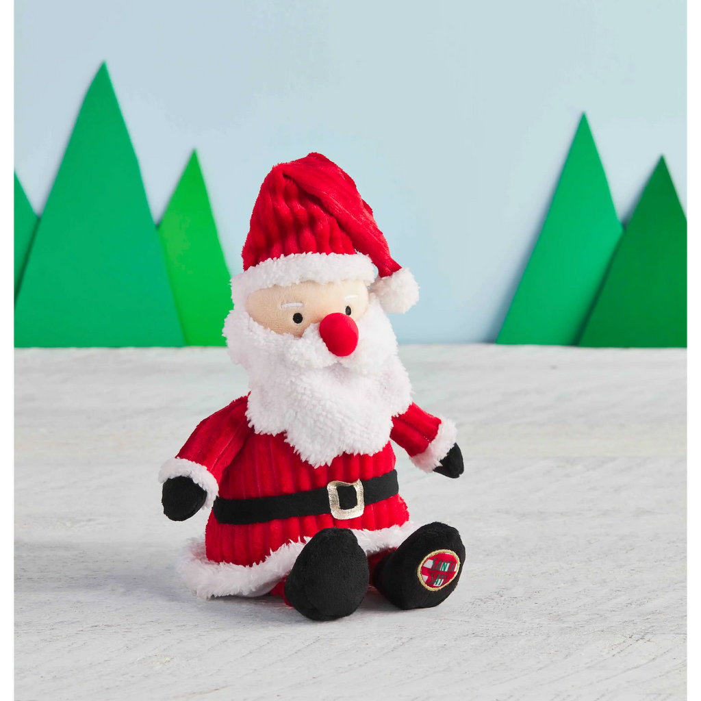 Press chenille and minky plush Santa for 10 different holiday questions and activities. Batteries included. Ages 3+.