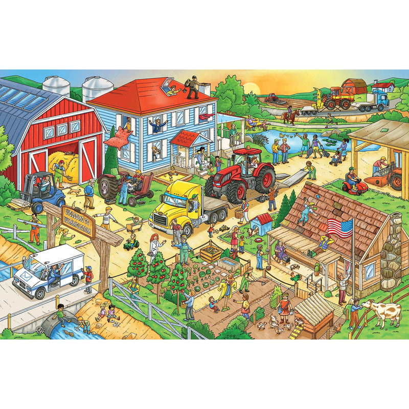 In My Big Wimmelbook—On the Farm, adventure awaits on Wimmelfarm. From the stable to the wheat field to the rodeo, follow each character as they go about their day—whether watching Jessie the handywoman fix one thing after another or hoping Cousin Grady will survive his next blunder!