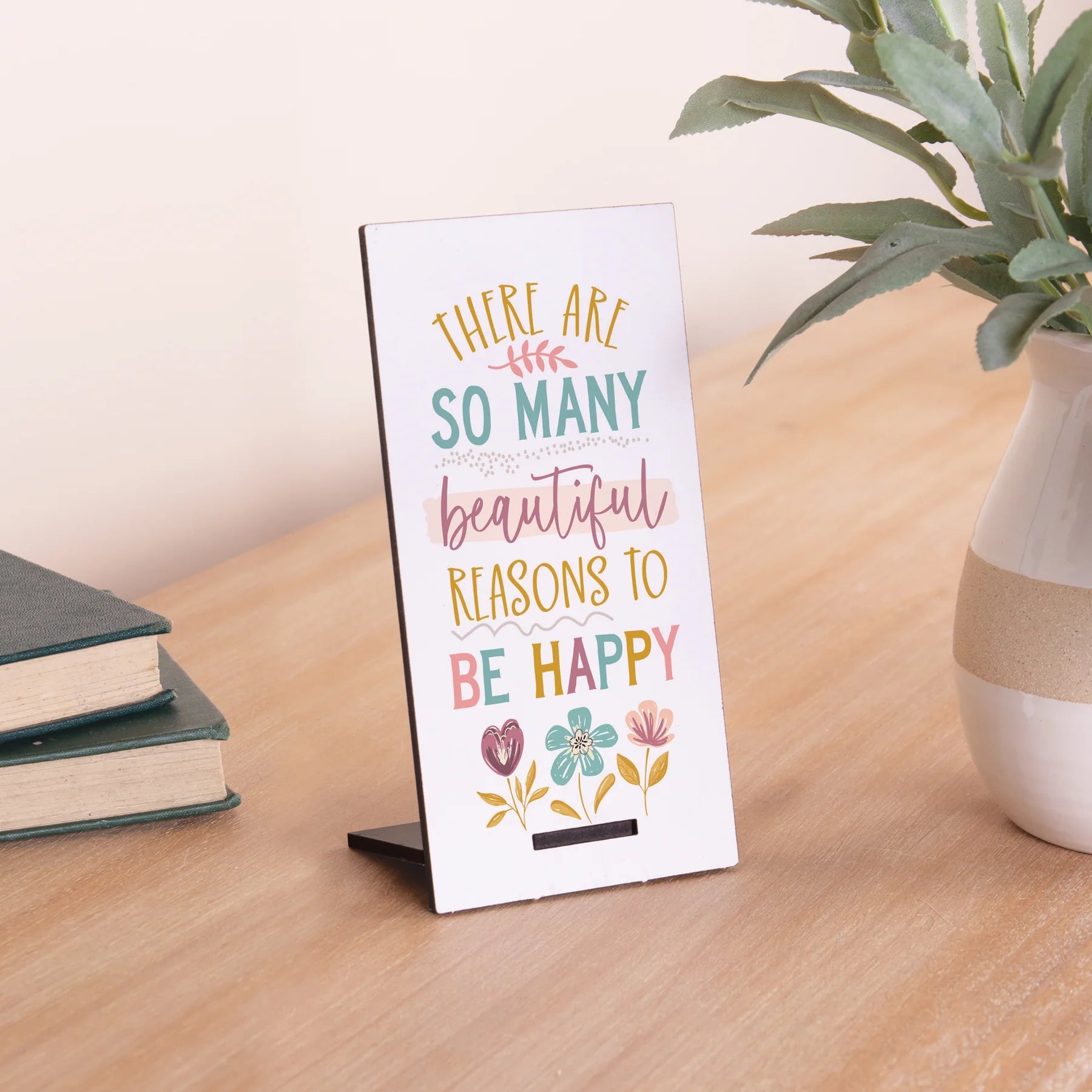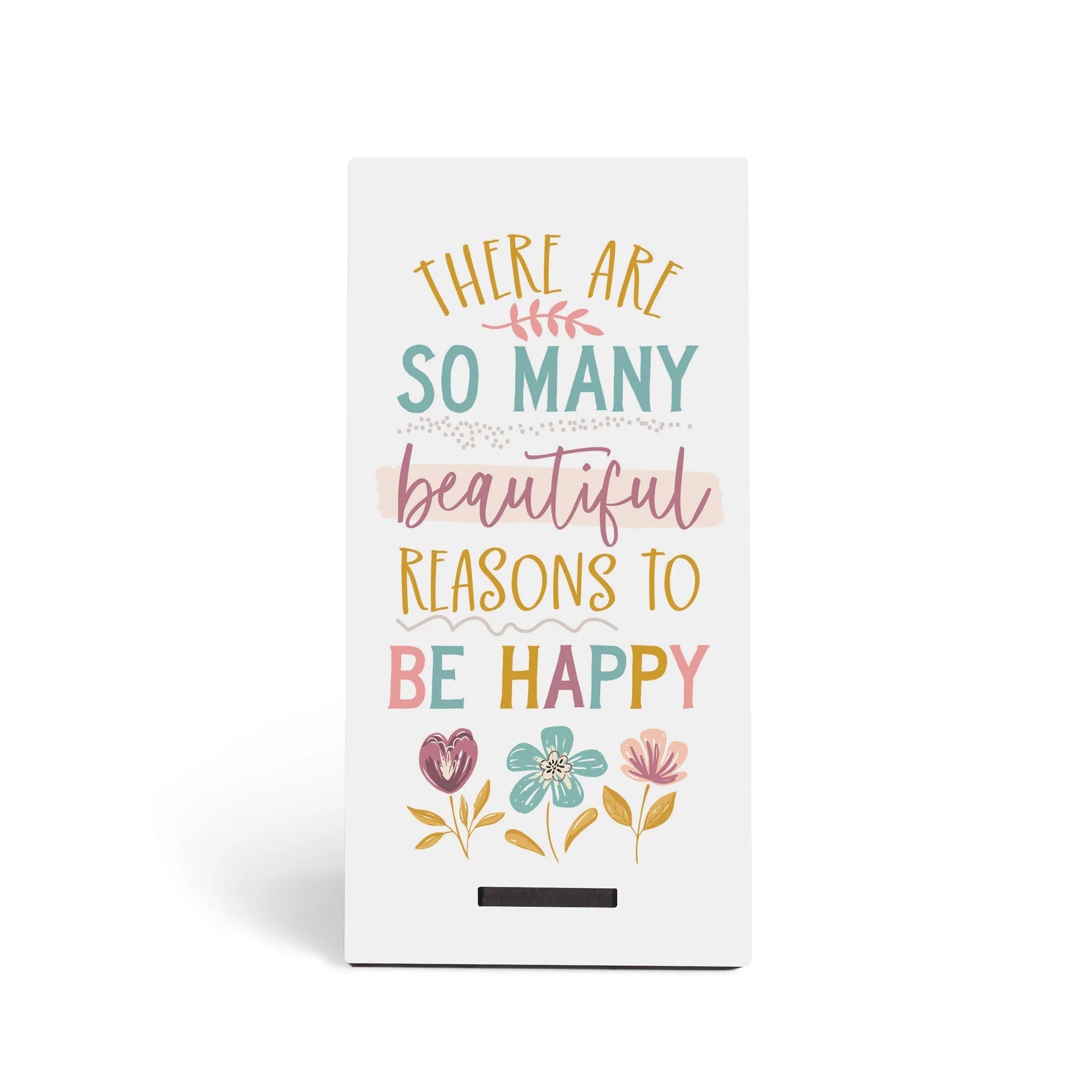 - Features the sentiment "There Are So Many Beautiful Reasons To Be Happy"
