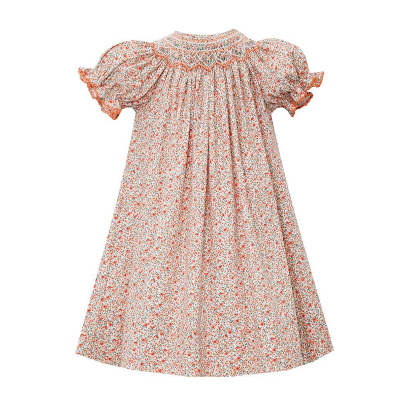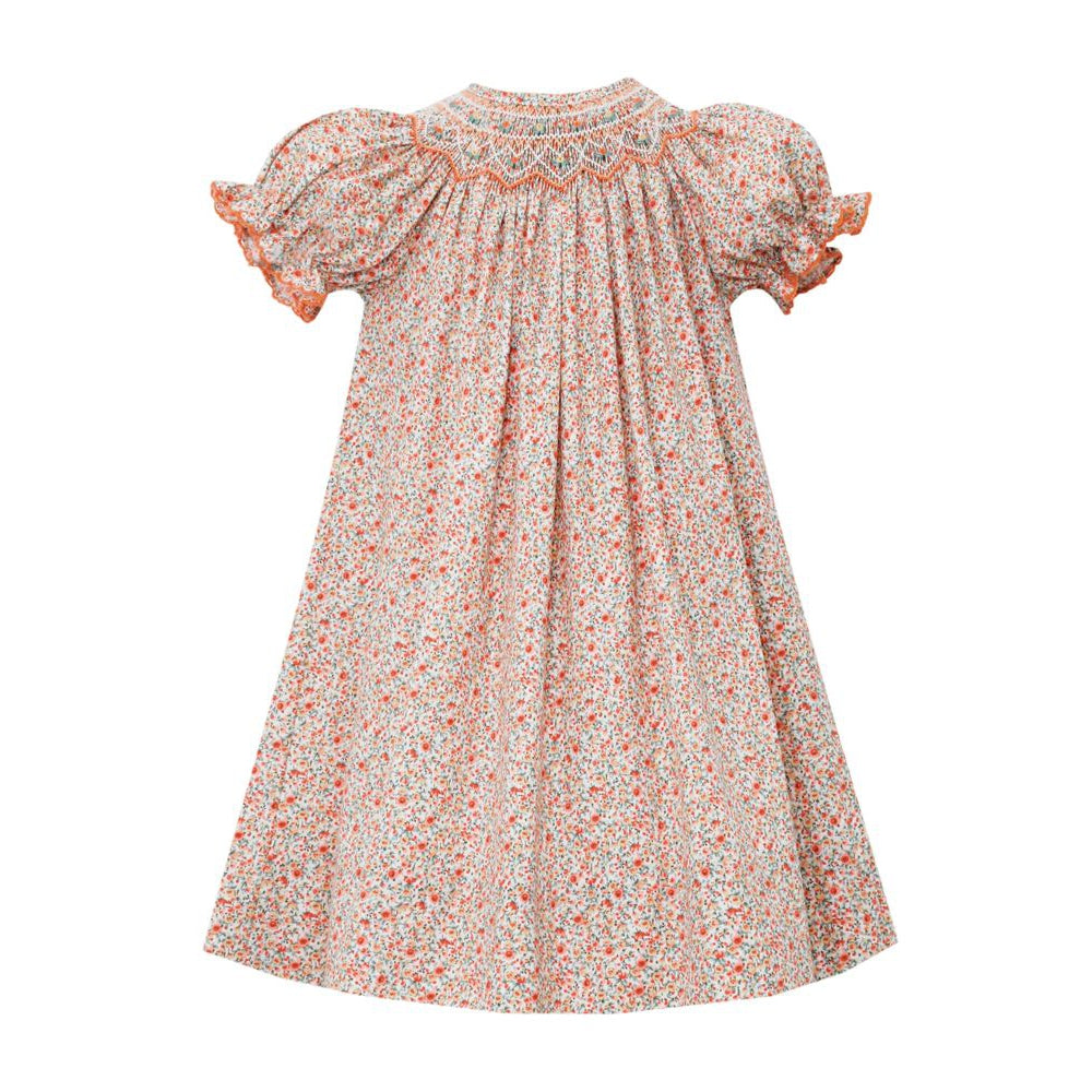 Petit Bebe Girls Orange Tiny Floral Smocked Dress