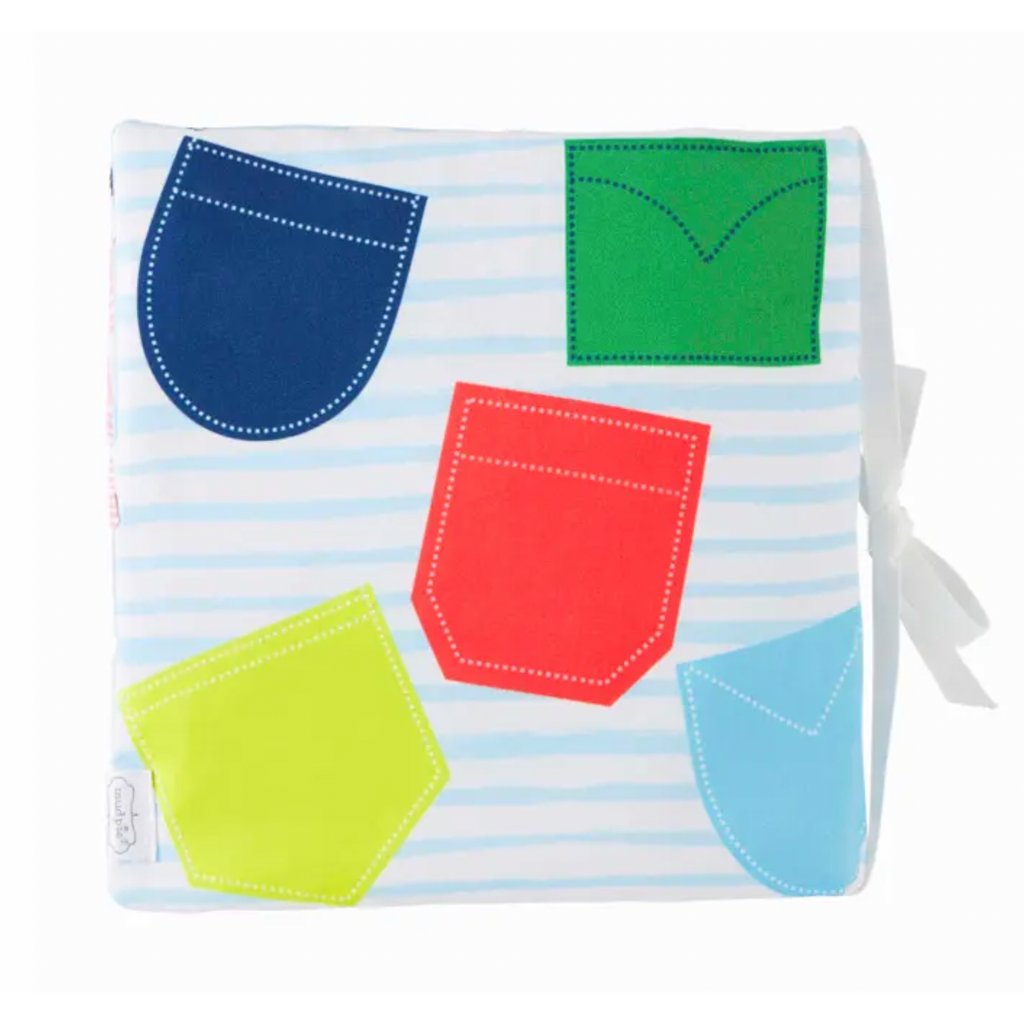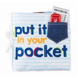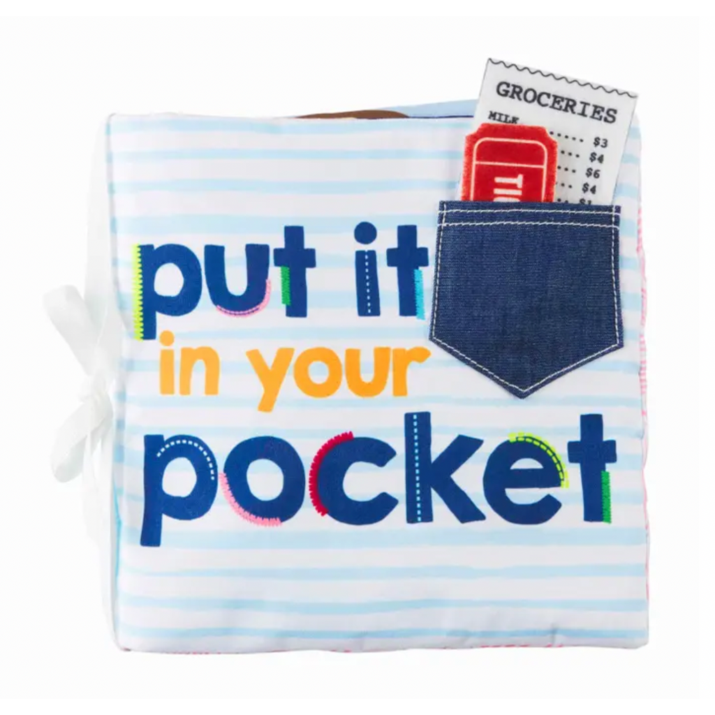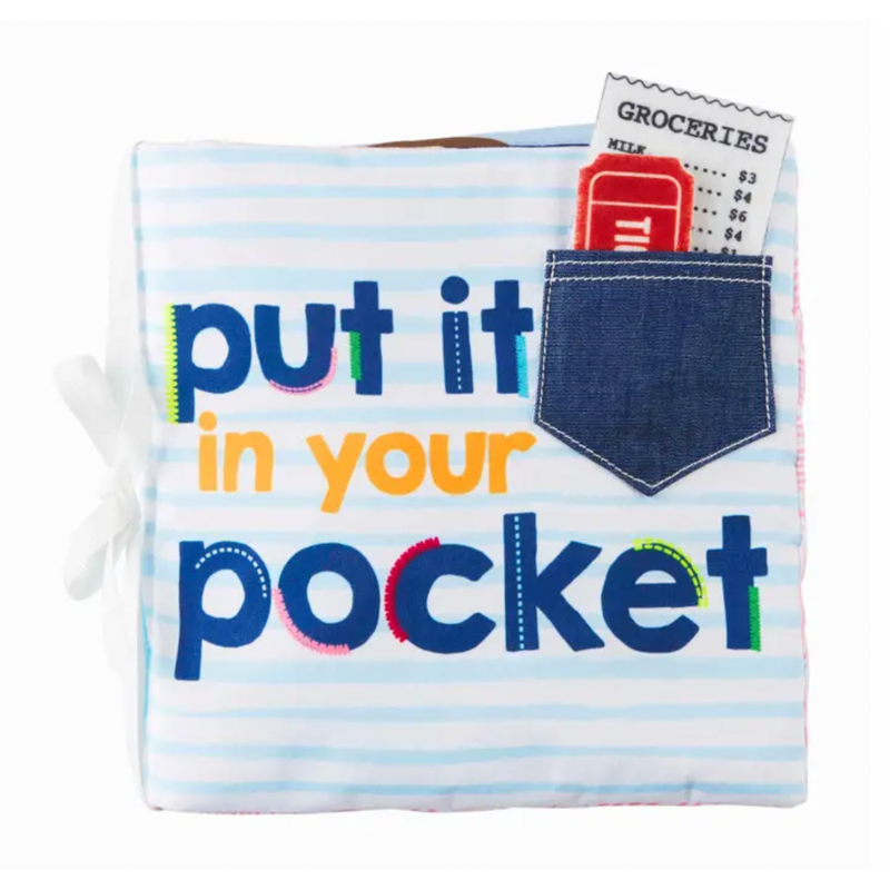 What's in your pocket?? Illustrated book includes interactive pockets with attached surprises: keys, receipts, tickets and more.