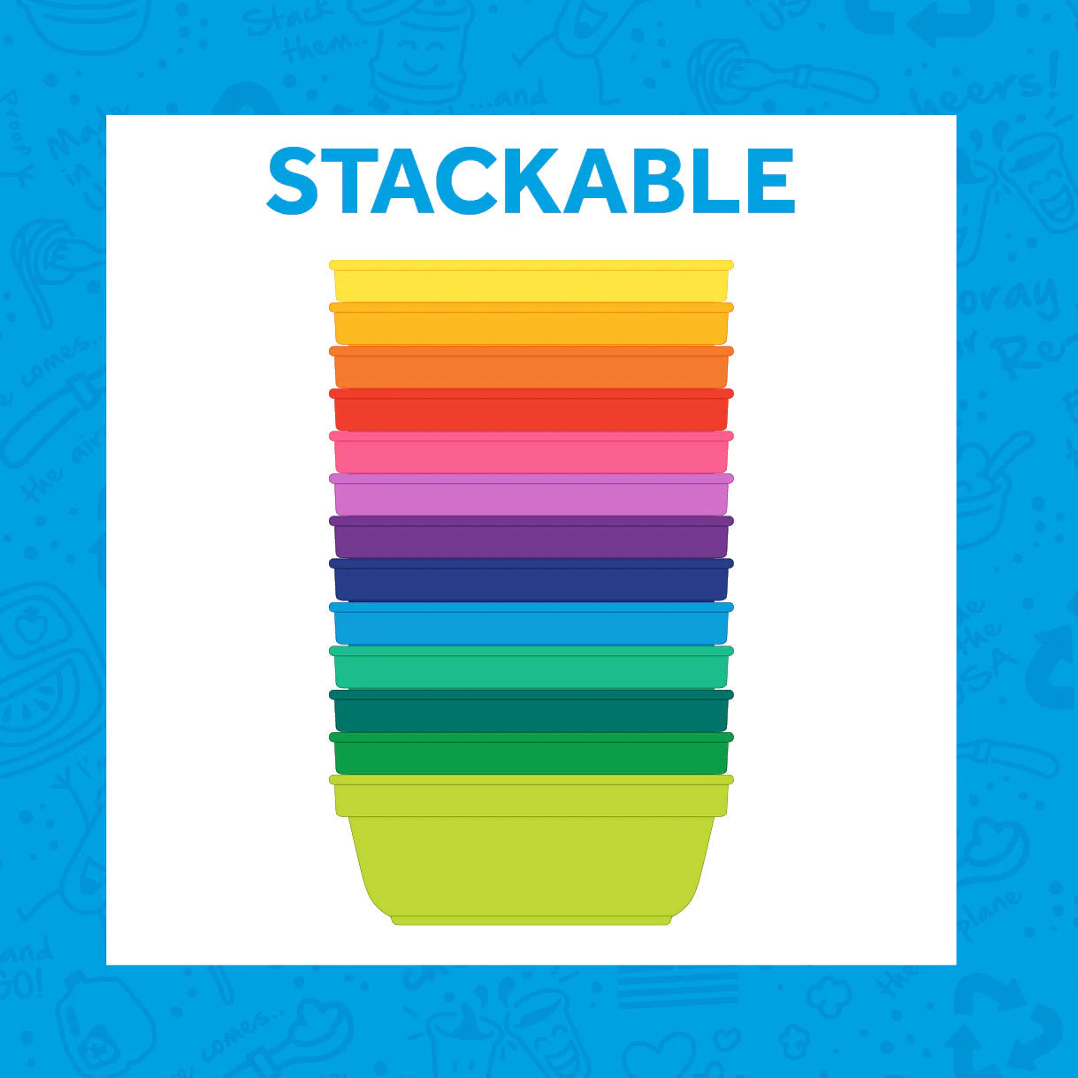 - Stackable for easy storage - stacks inside 20oz bowls too!