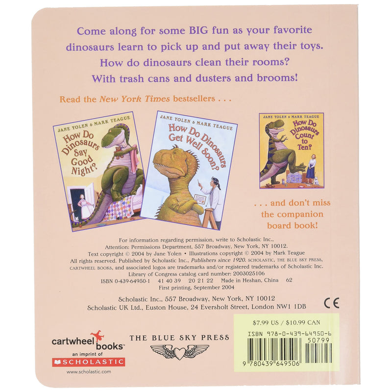 Come along for some BIG fun as your favorite dinosaurs learn to pick up and put away their toys. How do dinosaurs clean their rooms? With trash cans and dusters and brooms!Now Jane Yolen's playful, read-aloud text and Mark Teague's hilarious illustrations show your own little dinosaurs just how fun and easy it can be. Brimming with the same infectious humor as the other HOW DO DINOSAURS tales, this new board book is a perfect companion to the immensely popular picture books and a great baby gift as well.