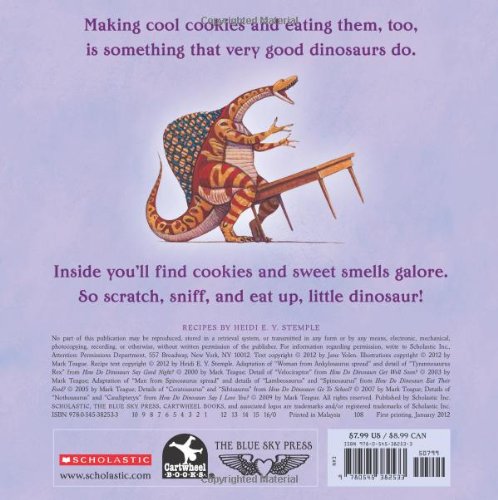 These classic, bestselling characters from Jane Yolen and Mark Teague are through eating dinner and they are ready for dessert!With cookie-themed scratch-and-sniff scents throughout, Jane Yolen and Mark Teague's deliciously funny dinosaurs are given a brand new sense, the sense of smell! With the aromas of chocolate, cinnamon, strawberry, and more, this is definitely the sweetest treat for all dinosaur fans!Includes 2 Dino-Cookie Recipes:- Cinnama-Saurus Rex (cinnamon oatmeal cookies)- Fossilized Lemon Tracks (lemon sugar cookies)