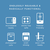 - Dishwasher, microwave, and oven safe up to 425 Fº
