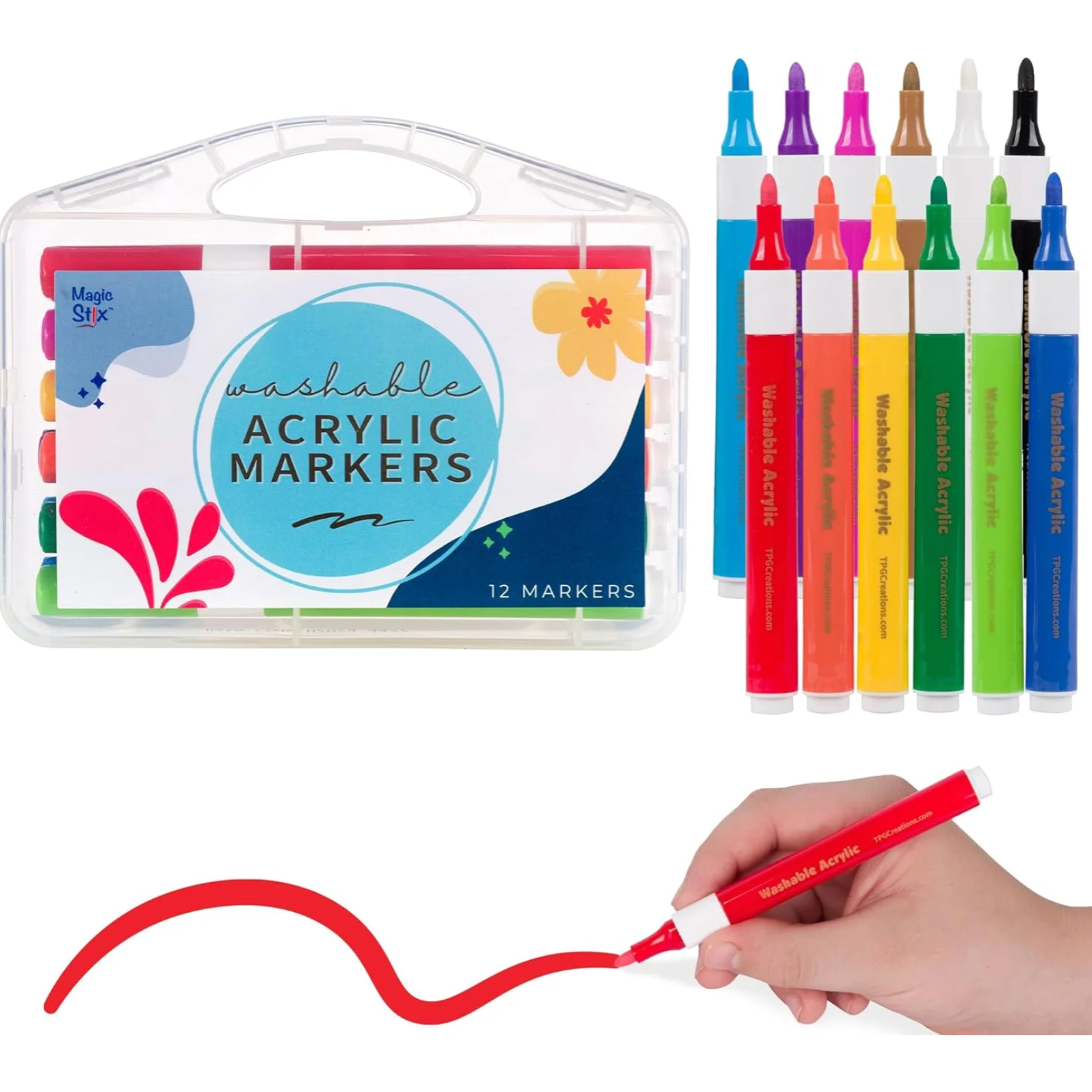Discover the freedom to create with our 12-Pack Washable Acrylic Markers, designed for artists of all ages and skill levels. These versatile markers embody the idea of "Acrylics for All" by offering a safe, vibrant, and easy-to-use solution for crafting, whether you're just starting or are already an experienced creator. Their washability makes them perfect for kids and beginners, while their versatility and bold, vibrant colors cater to seasoned artists.