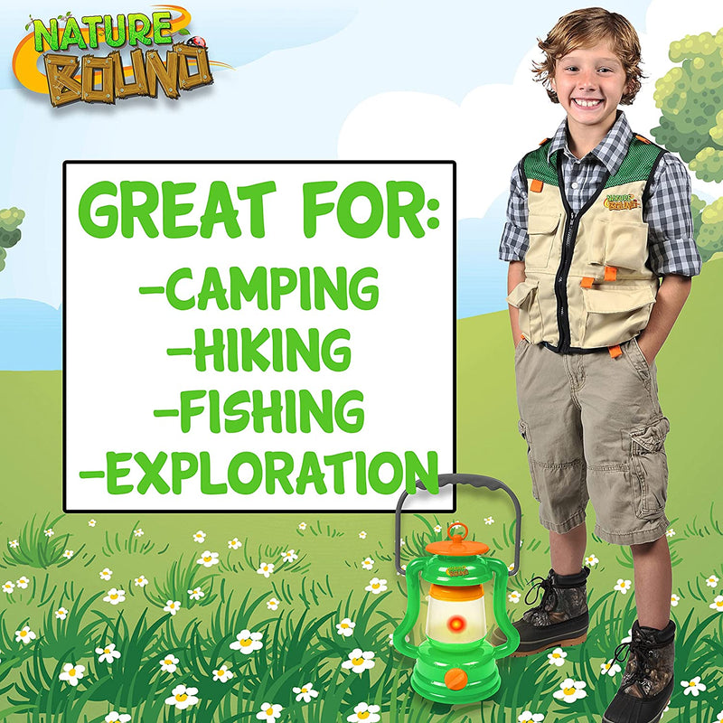 A BEST SELLER - GREAT TO GET KIDS OFF THE COUCH AND EXPLORING NATURE. This durable lantern is perfect for indoor and outdoor play. Turn the knob and listen to wildlife sounds and light up the room or tent. Handy carrying handle means the perfect toy for kids on the go.