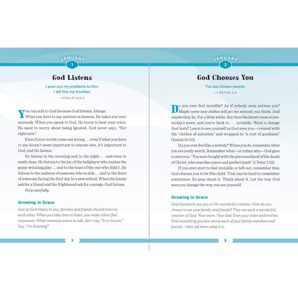 - includes a “Growing in Grace” opportunity with each devotion, offering practical and easy-to-do activities to help kids apply God’s grace—because giving grace is just as important as receiving it