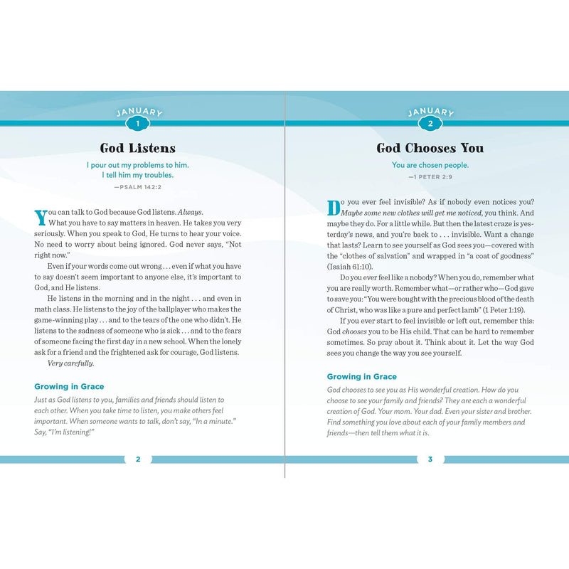 This fun daily devotional for kids will help your family connect with God’s heart of grace and will inspire you to live out His grace toward others. Whether you’re looking for a just-because gift; a present to commemorate a decision of faith, baptism, or confirmation; or a holiday gift, give your child the gift of God’s grace—every day.