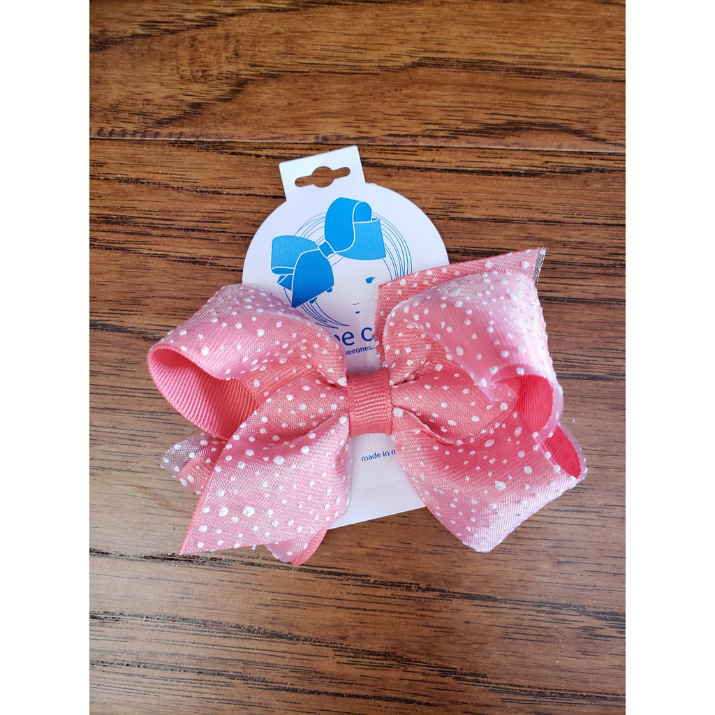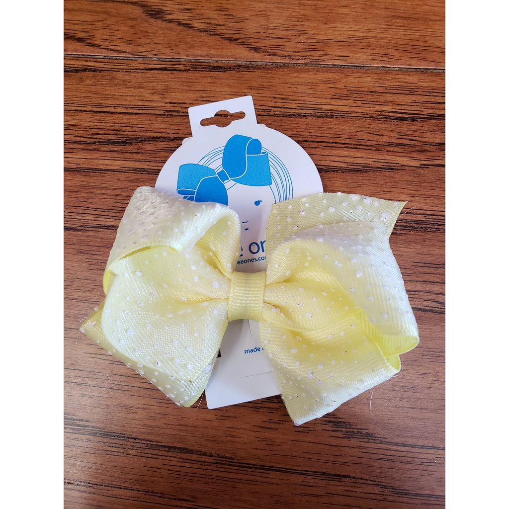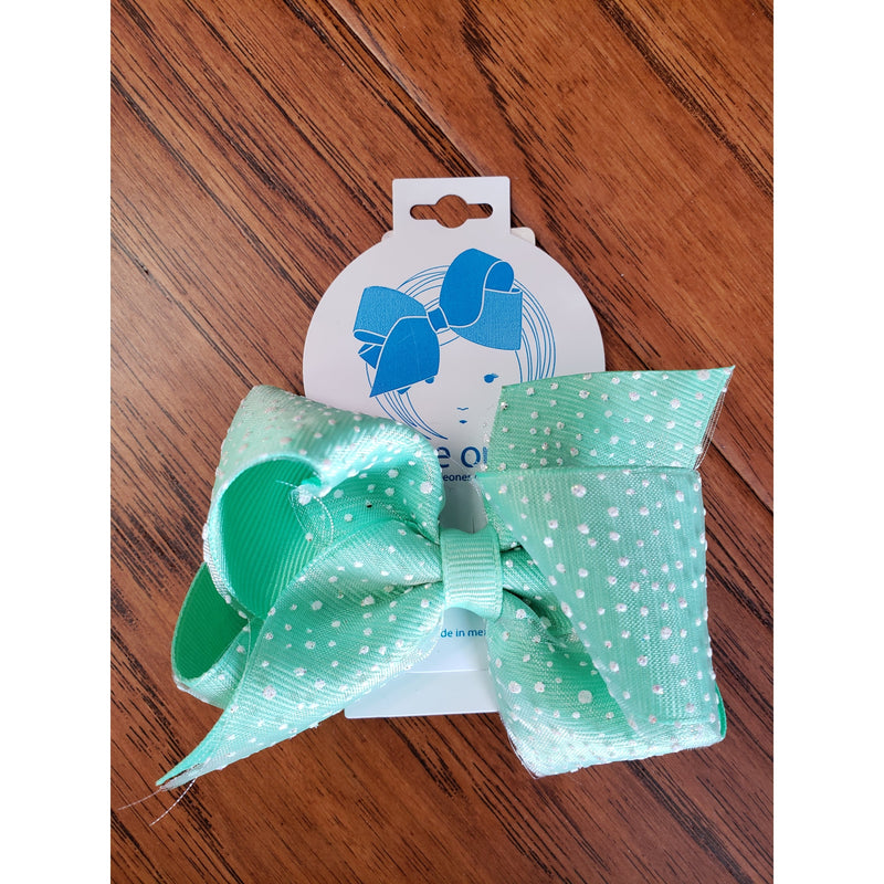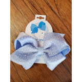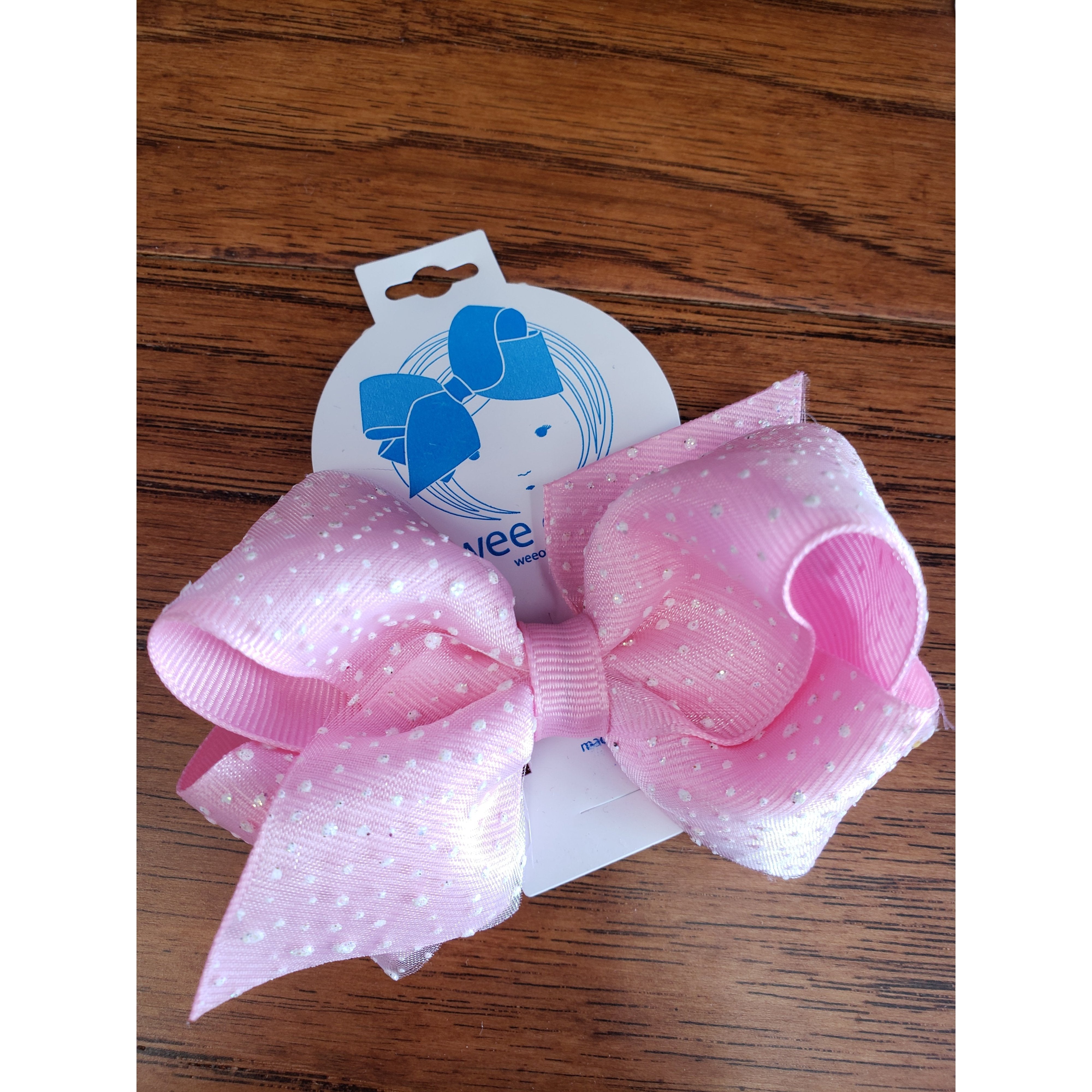 These bows are made with sparkly organza layered on grosgrain ribbon and are sure to dress-up any outfit.