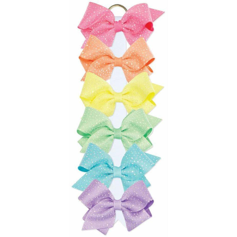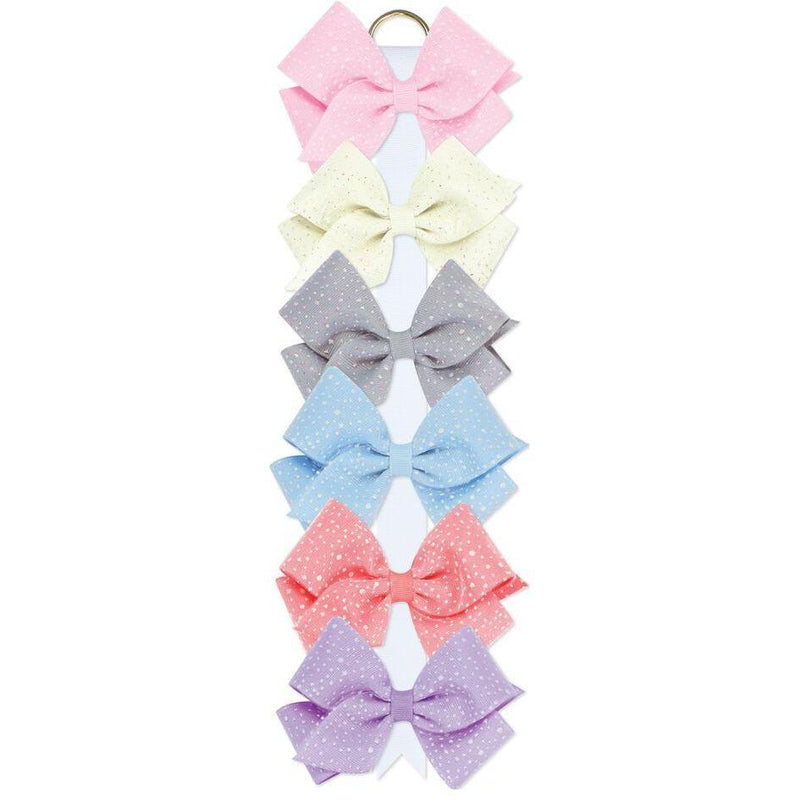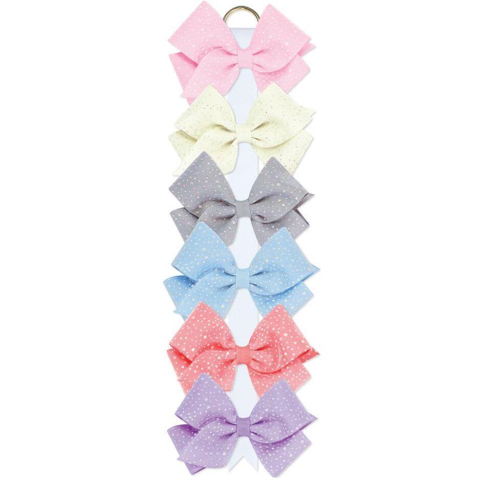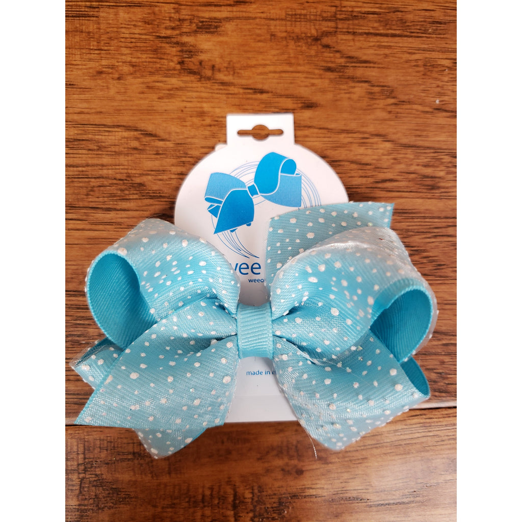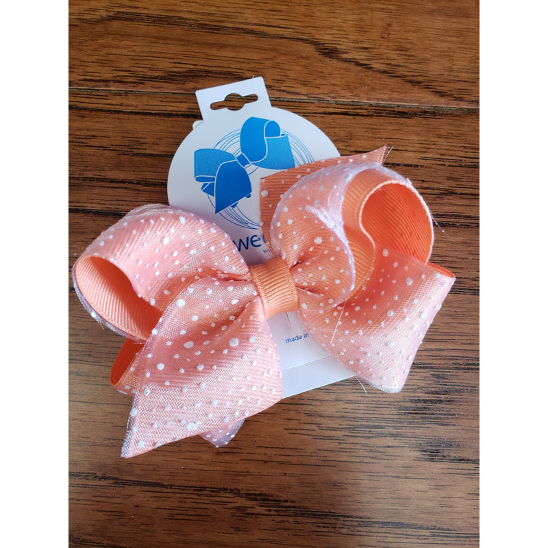 These bows are made with sparkly organza layered on grosgrain ribbon and are sure to dress-up any outfit.